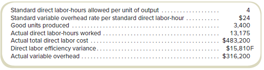 > Records at the Farnsworth Corporation contained the following data for the most recent period of activity: Variable overhead is applied based on standard direct labor-hours allowed. Required Compute the labor and variable overhead price and efficiency va