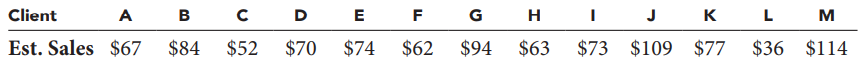 > A manufacturer of industrial motors has identified ten new prospective customers for its products with estimated each customer’s annual sales potential as follows: The company would like to allocate these ten prospective customers to f