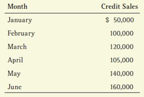 Month Credit Sales January $ 50,000 February 100,000 March 120,000 April 105,000 May 140,000 June 160,000