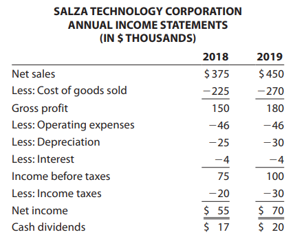 The Salza Technology Corporation successfully increased its âtop lineâ sales from $375,000 in 2018 to $450,000 in 2019. Net income also increased as did the ventureâs total assets. You have been asked to compare the financial performance between the two years.