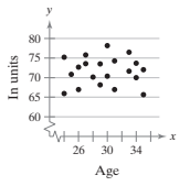> The scatter plots show the results of a survey of 20 randomly selected males ages 24–35. Using age as the explanatory variable, match each graph with the appropriate description. Explain your reasoning. a. Age and body temperature b. A