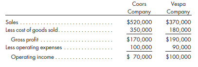 The separate income statements of Coors Company and its 60% owned subsidiary, Vespa Company, for the year ended December 31, 2017, are as follows: