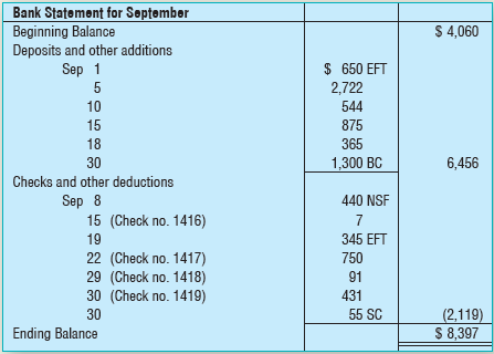 Povich Industrialâs Cash account shows a balance of $5,941 on September 30. On September 30, Povich Industrial, Inc., received the following bank statement: