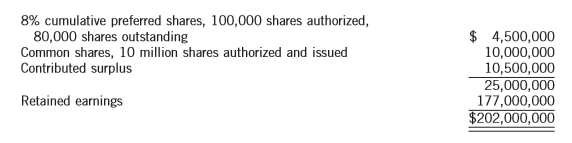 8% cumulative preferred shares, 100,000 shares authorized, 80,000 shares outstanding Common shares, 10 million shares authorized and issued Contributed surplus $ 4,500,000 10,000,000 10,500,000 25,000,000 177,000,000 $202,000,000 Retained earnings