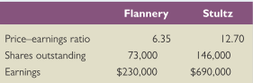 The shareholders of Flannery Company have voted in favor of a buyout offer from Stultz Corporation. Information about each firm is given here: