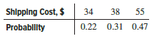 The shipping costs for fresh fruit items have been estimated and assigned the probabilities shown below. The expected value of the shipping costs is closest to: