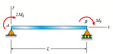 The simple beam AB shown in the figure has moments 2Mo and Mo acting at the ends.