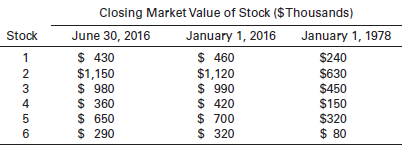 Closing Market Value of Stock ($Thousands) Stock June 30, 2016 January 1, 2016 January 1, 1978 $ 430 $1,150 $ 980 $ 360 $ 650 $ 290 $ 460 $1,120 $ 990 $ 420 $ 700 $ 320 $240 $630 $450 $150 $320 $ 80 1 2 4