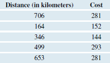 > The distance (in kilometers) and price (in dollars) for one-way airline tickets from San Francisco to several cities are shown in the table. a. Find the correlation coefficient for this data using a computer or statistical calculator. Use distance as th