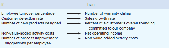 > The table shown below contains three performance measures for each of the four perspectives of the balanced scorecard. Required: 1. Choose one of the three learning and growth measures and write an if-then hypothesis statement that connects it to one of