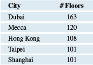 The table shows the location and number of floors in some of the tallest buildings in the world. (Source: Infoplease.com)
