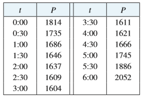 The table (supplied by San Diego Gas and Electric) gives the power consumption P in megawatts in San Diego County from midnight to 6:00 am on a day in December. Use Simpsonâs Rule to estimate the energy used during that time period. (Use the fact that power is the derivative of energy.)