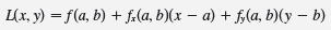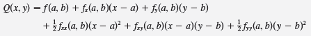 L(x, y) = f(a, b) + fala, b)(x – a) + f,(a, b)(y – b) Q(x, y) = f(a, b) + f.(a, b)(x – a) + f,(a, b)(y – b) +{fa(a, b)(x – a)² + fa,(a, b)(x – a)(y – b) + f(a, b)(y – b} - b² 2 4ас — b2 f(x, y) — ах* + bху + су? - cy² 2a 4a? +