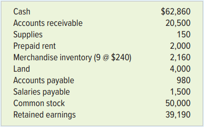 > Each of the following independent events requires a year-end adjusting entry. Show how each event and its related adjusting entry affect the accounting equation. Assume a December 31 closing date. a. Paid $6,000 cash in advance on April 1 for a one-year