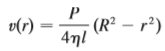 The velocity v of blood that flows in a blood vessel with radius R and length l at a distance r from the central axis is