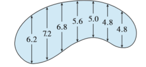 The widths (in meters) of a kidney-shaped swimming pool were measured at 2-meter intervals as indicated in the figure. Use Simpsonâs Rule to estimate the area of the pool.