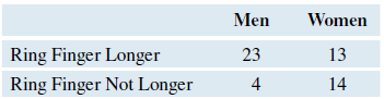There is a theory that relative finger length depends on testosterone level. The table shows a summary of the outcomes of an observational study that one of the authors carried out to determine whether men or women were more likely to have a ring finger that appeared longer than their index finger. Identify both of the variables, and state whether they are numerical or categorical. If numerical, state whether they are continuous or discrete.