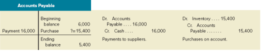 Accounts Payable had a balance of $6,000 at the beginning of the month and $5,400 at the end of the month. During the month, payments to suppliers amounted to $16,000. Calculate the purchases on account during the month.