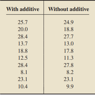 This exercise shows what can happen when a hypothesis-testing procedure designed for use with independent samples is applied to perform a hypothesis test on a paired sample. The gas mileages, in miles per gallon (mpg), of 10 randomly selected cars, both with and without a new gasoline additive, are shown in the following table.