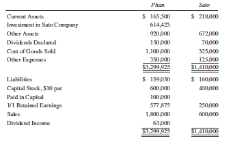 Trial balances for Phan Company and its subsidiary Sato Company on December 31, 2014, are as follows: