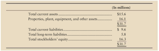 (In millions) Total current assets $15.6 Properties, plant, equipment, and other assets. 16.1 $31.7 Total current liabilities.. $ 9.6 Total long-term liabilities. Total stockholders' equity.. 5.8 16.3 $31.7