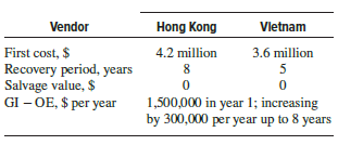 > A European candy manufacturing plant manager must select a new irradiation system to ensure the safety of specific ingredients, while being economical. The two alternatives available have the following estimates: The company is in the 35% tax bracket and
