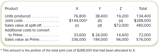 Troester Manufacturing produces products X, Y, and Z from a joint process. Each product can be processed further and sold as X-Prime, Y-Prime, and Z-Prime. Information on the operations for the most recent period follows: