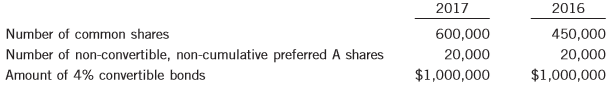 > The following information is for Polo Limited for 2017: There were no changes during 2017 in the number of common shares, preferred shares, or convertible bonds outstanding. For simplicity, ignore the requirement to book the convertible bondsâ