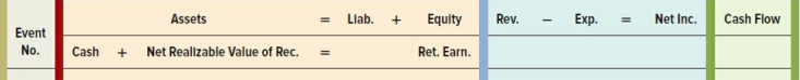 a. Show the effect of each of these events on the elements of the financial statements, using a horizontal statements model like the following one. Use + for increase, â for decrease, and NA for not affected. In the Cash Flow column, indicate whether the item is an operating activity (OA), investing activity (IA), or financing activity (FA).