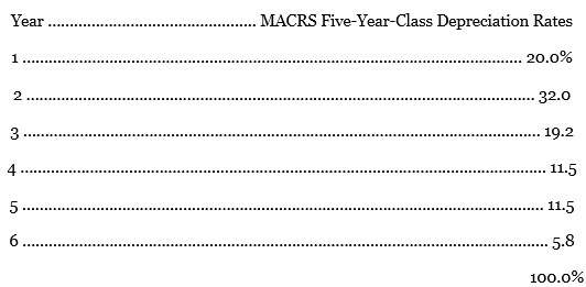 Year MACRS Five-Year-Class Depreciation Rates www ... 1 20.0% 2 32.0 19.2 4 . 11.5 5- 11.5 .... 6 5.8 ....... 100.0% 3.