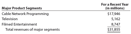 Twenty-First Century Fox, Inc. is one of the worldâs largest entertainment companies that includes Twentieth Century Fox films, Fox Broadcasting, Fox News, the FX, and various satellite properties. The company provided revenue disclosures by its major product segments in the notes to its financial statements as follows: