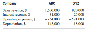 Two companies, ABC and XYZ, have the following values on their annual tax returns: