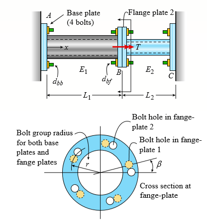 (f) What is the maximum permissible misalignment angle βmax if allowable stresses in shear and bearing for all bolts [from part (d)] are not to be exceeded?](../images/two-pipes-l1--2-5-m-and-l2--162122-1.jpg)