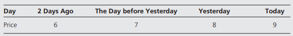 Day 2 Days Ago The Day before Yesterday Yesterday Today Price 6. 7 8 9.