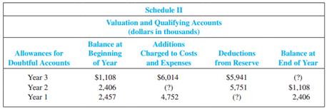 Schedule II Valuation and Qualifying Accounts (dollars in thousands) Additions Charged to Costs and Expenses Balance at Allowances for Beginning Deductions Balance at Doubtful Accounts of Year from Reserve End of Year Year 3 $1,108 $6,014 $5,941 (?) Year 2 2,406 (?) 4,752 5,751 S1,108 Year I 2,457 (?) 2,406