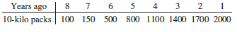 United Fruits now offers volume discounts by the 10-kilogram (10-kilo) pack to small, as well as large, supermarket chains for organically grown in-season fruit shipped directly from the orchard. Over the last 8 years, the food market chain Coop- For All has purchased the number of 10-kilo packs shown below when United Fruits has California free-stone peaches in season. Through a special arrangement, the price per 10-kilo pack has remained constant at $15.00 per pack. United Fruits will now charge Coop For All according to the volume discount schedule shown. The no-discount price this year is $19.95 per 10-kilo pack.