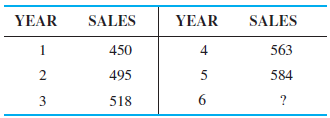 YEAR SALES YEAR SALES 1 450 4. 563 495 584 518 6 ? 2. 3.