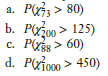 > Use a computer to find the following values of χ2. a. χ2 .99, 55 b. χ2 .05, 800 c. χ2 .99, 43 d. χ2 .10, 233