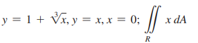 > graph the region R bounded by the graphs of the equations. Use set notation and double inequalities to describe R as a regular x region and a regular y region.