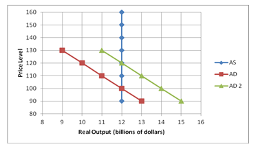 14 Money Demand 12 10 Money Supply 8 4 100 200 300 400 500 600 700 Quantity of Money (billions of dollars) 6. 2. Interest Rate 14 12 10 8 2 0 1 2 3 4 5 6 7 8 9 10 11 12 Investment (billions of real dollars) Interest Rate 4) 160 150 140 130 120 -AS 110 AD 100 AD 2 90 80 8 10 11 12 13 14 15 16 Real Output (billions of dollars) Price Level 00