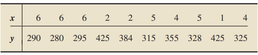 The Kelley Blue Book provides information on wholesale and retail prices of cars. Following are age and price data for 10 randomly selected Corvettes between 1 and 6 years old. Here, x denotes age, in years, and y denotes price, in hundreds of dollars.