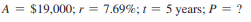 > Use the continuous compound interest formula (3) to find each of the indicated values A = $32,982; P = $27,200; r = 5.93%; t = ?