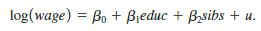 log(wage) = Bo + Bjeduc + Bzsibs + u.