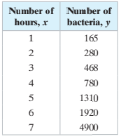 Number of Number of hours, x bacteria, y 1 165 2 280 3 468 4 780 5 1310 1920 7 4900
