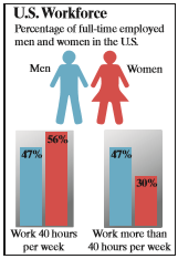U.S. Workforce Percentage of full-time employed men and women in the US Men Women 56% 47% 47% 30% Work 40 hours Work more than per week 40 hours per week