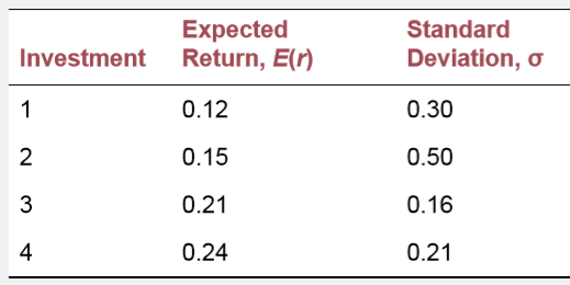 > Use the following data in answering below CFA Question; Suppose investor “satisfaction” with a portfolio increases with expected return and decreases with variance according to the following “utility&
