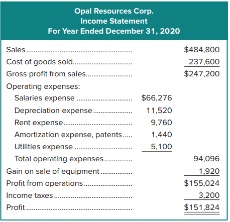 > Green Forest Corp.’s 2020 income statement showed the following: profit, $292,600; depreciation expense, building, $43,000; depreciation expense, equipment, $6,630; and gain on sale of equipment, $7,000. An examination of the company’s current assets and