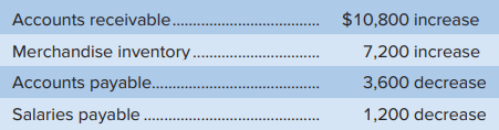 > Use the following income statement and information about changes in non-cash current assets and current liabilities to present the cash flows from operating activities using the indirect method: Changes in current asset and current liability accounts dur