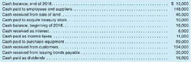 Use the following information about the 2018 cash flows of Mason Corporation to prepare a statement of cash flows under the direct method. Refer to Exhibit 4.3 for the appropriate format.