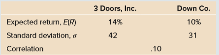 3 Doors, Inc. Down Co. Expected return, E(R) 14% 10% Standard deviation, o 42 31 Correlation .10